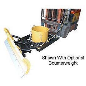 FORKLIFT SNOW PLOW BLADE Our Forklift Plow is ideal for moving snow and slush from your dock area and parking lots. Snow Plows are designed for use with a Fork Lift to further the use of your existing equipment. Integral trip springs help prevent damage from rough or uneven surfaces. Easy angling and back grade abilities for optimal performance, as a simple release cable adjusts plow blade angle to two positions. Snow Plow is constructed of 1/4" rollplate with steel rigs. Snowplow is 6'W overall, with 5/8" x 6" hardened steel cutting edge for long life. Safety chains included help secure plow unit to the fork truck. NOTE: OSHA requires contacting the manufacturer of your truck for written approval for the use of any fork truck attachment. 0.00 L. 0.00 W. 0.00 H.